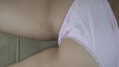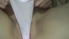 Ela tem muita energia sexual enquanto se masturba com a calcinha. Fica muito excitada acariciando seu corpo.