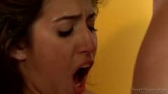 Puta morena acorda louca para foder, encontra dotado na cozinha e parte para transa, senta na rola até gozar e ganha leitada dentro.