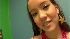 Um pau enorme espera esta jovem gulosa. Ela tem 18 anos mas tenho certeza que não é a primeira vez que ela põe para fora ...