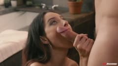 Esposinha nova e gostosa chega em casa para fazer amor gostoso com seu marido, toma banho e parte para chupar a rola, fode gostoso e leva gozada.