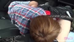 A garota asiática se masturba no carro com uma pequena varinha mágica. Depois de gozar ela chupa o pau do cara!