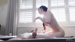 Essa transexual se chama Annabelle e ela dá a Michael uma massagem gostosa com toda a intenção de excitá-lo muito e poder transar com ele.