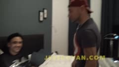 Este tio morena está em casa com um amigo que quer fazê-lo ter um bom momento de sexo e quando ele transa com ele, o pau fica muito duro.