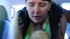 No carro com uma gorda madura com fome