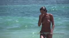 Ele foi com sua câmera para uma praia de nudismo e sem que ninguém percebesse, gravou os peitos de várias mulhere