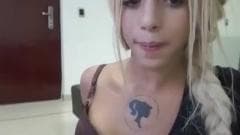 Esta é uma bela transexual loira e jovem que vai nos deixar apaixonados pelo seu corpo quando a vemos se masturbando na câmera com prazer.