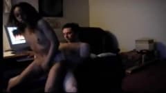 A morena que vemos aqui deixa sua buceta quente é por isso que acaba sentada no pênis de seu parceiro, assistindo pornô na frente do computador