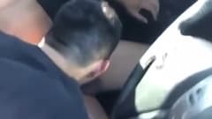 Este jovem não se importa se eles o vêem. Ela não hesita em chupar o pau de seu homem, mesmo que eles estejam no carro em uma via pública.