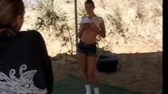 Aqui está uma putinha sexy com seios pequenos que vai ser generosamente fodida ao ar livre sob o sol!
