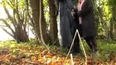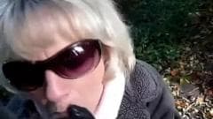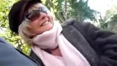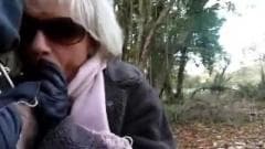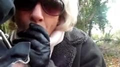 Essa loira foi passear com seu parceiro no sábado, mas está frio para tirar todas as roupas, para que ela mal chupe seu pau
