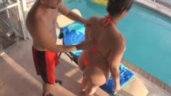 Esse cara está na piscina com uma moça muito gorda que tem seios grandes e bunda como ela gosta. Vai ficar muito quente ao ser fodida.