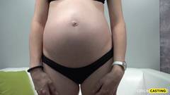 Uma linda loira prestes a dar à luz relaxa abrindo bem as pernas para uma boa foda. Não perca!