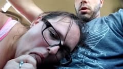 Este homem registra o momento em que sua namorada se abaixa para chupar seu pênis e parece gostar muito, como você pode ver nesta cena.