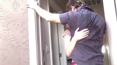 Essa moça encontrou seu vizinho na porta do prédio de uma forma casual e fica tão animada quando ela o vê que ela o leva para a cama para foder.