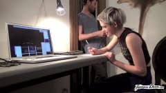 Diana Colton está em casa fazendo planos de trabalho com James Deen, mas a seriedade vai durar pouco, já que começam a foder naquele lugar.