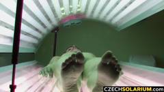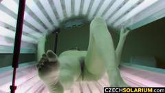 Nesse solário, uma vagabunda aproveita sua sessão de UV para se masturbar profundamente, combinando negócios com prazer.