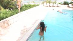 Uma cena com duas lindas atrizes magras se mostrando e fazendo safadeza para um ensaio pornográfico.