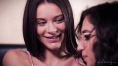 Duas morenas e lésbicas de óculos vão se tocar para ter um orgasmo melhor depois!