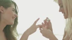 Essas duas amigas sensuais se tocam suavemente até que um homem veio para dar-lhes prazer com a ajuda de seu pênis que elas masturbam carinhosamente...