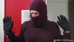 Quando esta esposa pega um ladrão, ela adora o pau dele. Quando o marido tenta intervir, ele é algemado à cama e forçado a vê-la fazer anal.