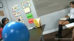Esse jovem será o garoto sortudo da classe. A professora vadia o chama para a frente para lhe dar uma demonstração sexual dominante.
