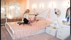 Não perca essas duas transexuais loiras em cenas de muito prazer. Uma delas se deixa subjugar e é amarrada e dominada pela outra.