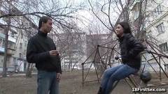Há muito poucas garotas com fome de sexo como esta bela morena que concretizou o seu primeiro desejo de vara na buceta à tenra idade de 18 anos!