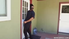 Essa putinha pegou o bandido arrombando a sua casa, e depois de verificar o tamanho do pau vai por ele para arrombar a sua buceta.
