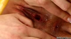 Esta pornstar linda e excitante irá mostrar-lhe o que pode fazer com um vibrador enorme e alguma fruta madura!