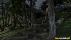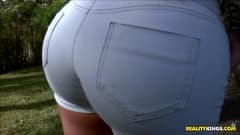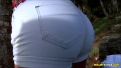 Essa bomba sexy é a Angel Lima, uma loira boazona de corpo bronzeado que gosta de exhibir seu bundão antes de dar uma boa foda ao ar livre.