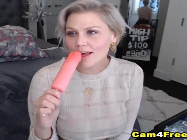 Essa loira sexy está brincando sozinha consigo mesma. Ele chupa seus vibradores e acaricia seus peitos suculentos