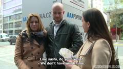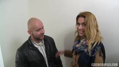 Uma garota oferece dinheiro a um casal para fazer sexo em grupo nas escadas de um prédio, e eles não pensam duas vezes.