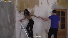 Uma morena excitada vai ser pega em um prédio vazio, ela também vai receber um delicioso bukkake que vai fazê-la se sentir feliz fodendo.