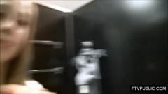Essa jovem loira é realmente uma prostituta muito safada que anda pelo shopping mostrando que não usa calcinha. Você não precisa ter vergonha.
