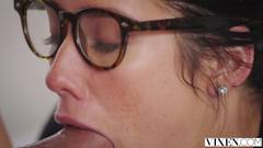 A morena gostosa fica maravilhosa com essas meias, deixando-se levar e desfrutando de um sexo incrível com seu amor famoso.