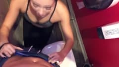 Quando ela se ajoelha na frente desse homem nu, todos sabemos o que acontecerá a seguir. Então prepare-se para o sexo oral.