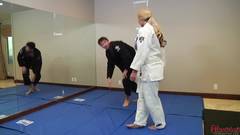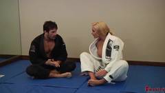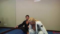 Esta gostosa apenas perdeu a partida de karate, mas ela vai dar uma boa vingança, fazendo seu parceiro ejacular.