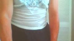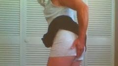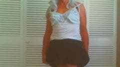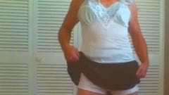 Vista-se de mulher e torne seu pau duro na frente da câmera.