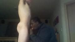 Hoje vamos ver um homem branco ao lado de um homem negro que se ajoelha para chupar o pênis o quanto quiser. Ele parece amar o que sente.
