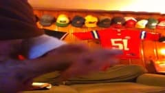 O cara fica de pé com a piça na mão e se masturba e com a outra mão segura a câmera perto e filma a piça ficando maior, mais dura e mais baixa!