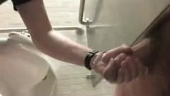Masturbar o pau do seu vizinho no banheiro