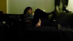 Esse homem transexual está relaxando em casa num momento de prazer solo. Depois de enfiar um bom dildo em sua bunda gorda, ele se senta para bater punheta!