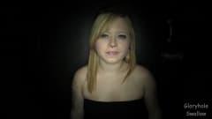 Uma jovem loira chupa galos no buraco da glória e a puta realmente gosta! Ele os engole até as bolas, ele é muito ganancioso!