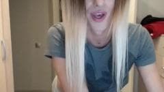 Esta é uma loira que entra em um chat por vídeo, e quando tem centenas de pessoas a observando na webcam, ela as surpreende mostrando que tem um pau.