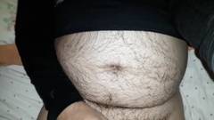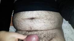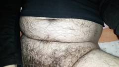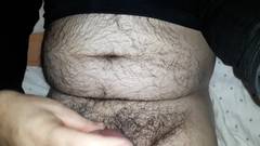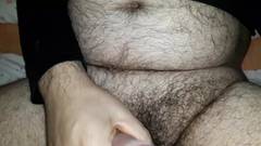 Um cara gordo muito peludo masturba seu grande pau para nós na frente da câmera. Você não pode perder.