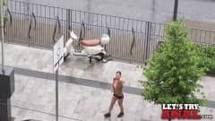 Voltando para casa depois de correr, ela toma um banho sensual, se toca e chupa o namorado antes que ele cuide de sua bela bunda com seu grande caralho.