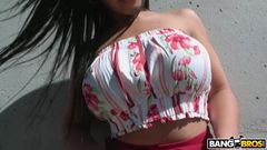Uma latina com corpo voluptuoso é exibida com sensualidade. Ela é muito quente e quer pau. Ele pega na praia atrás dos arbustos.