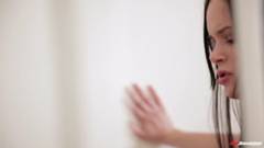 Jenna Ross é uma jovem morena de peitos pequenos sendo fodida por um pau na escada de uma casa