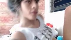Ninguém imaginaria que essa moça é uma transexual tão excitada e acaba a gozar no próprio rosto diante das câmeras