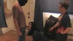Essa trans vai ganhar um castigo bastante agradável para ela. Ela será dominada por um cara mascarado e uma garota dominante e fica com a cara esporrada!